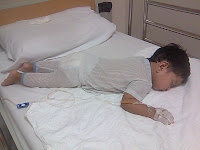Doktor check suhu bdn dah 40.6C,pastu nk kene amik darah ngn masuk kan air..3kali cucuk tangan izzul baru la jmpe salur darah,sian mama tgk tangan kecik tu kene cucuk2..izzul pn dah tak ade tenage nk nangis,menyerah jer die..90ml air doktor masuk kan semalam..